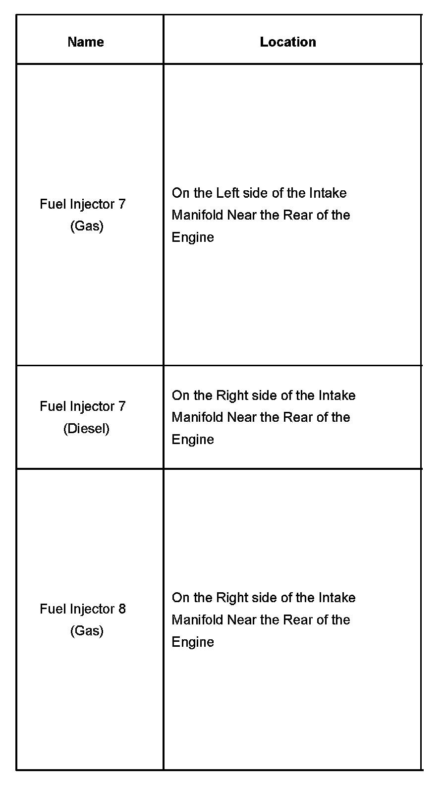 Fuel Injector 7 - Fuel Injector 8: