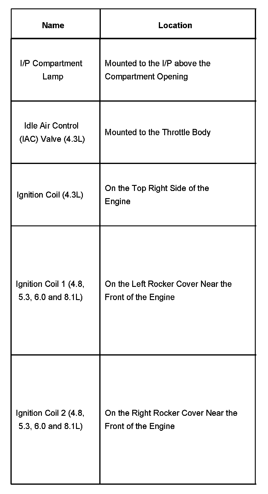 I/P Compartment Lamp - Ignition Coil 2: