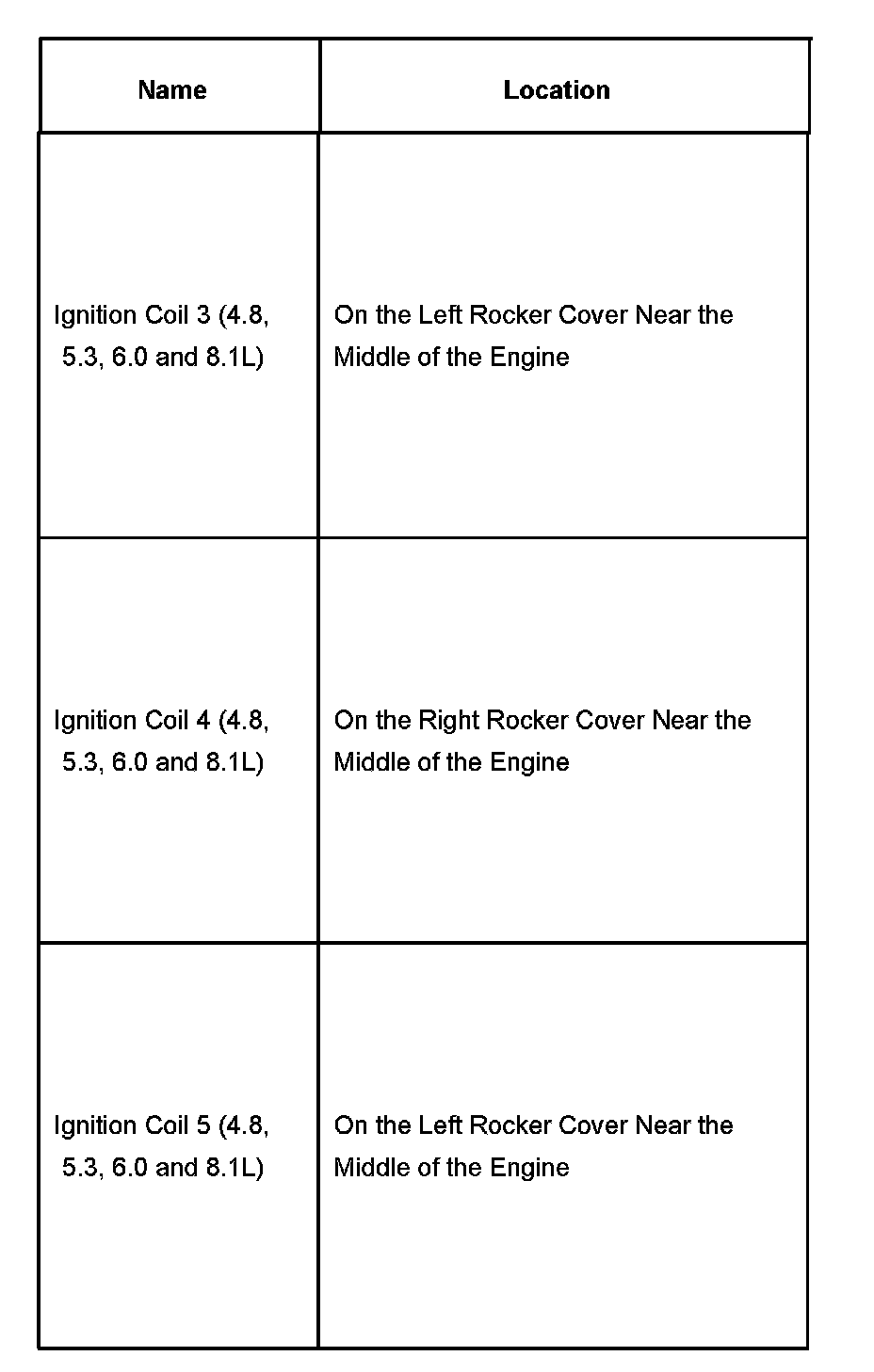 Ignition Coil 3 - Ignition Coil 5: