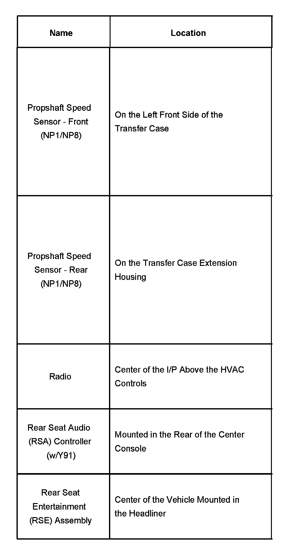 Propshaft Speed Sensor - Rear Seat Entertainment Assembly: