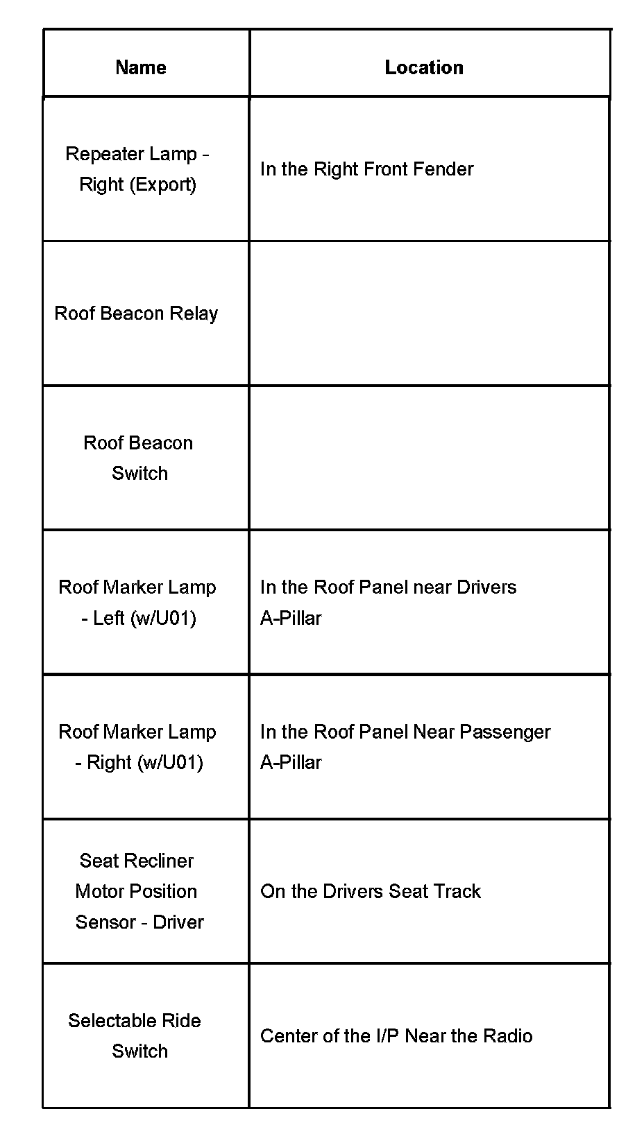 Repeater Lamp - Selectable Ride Switch: