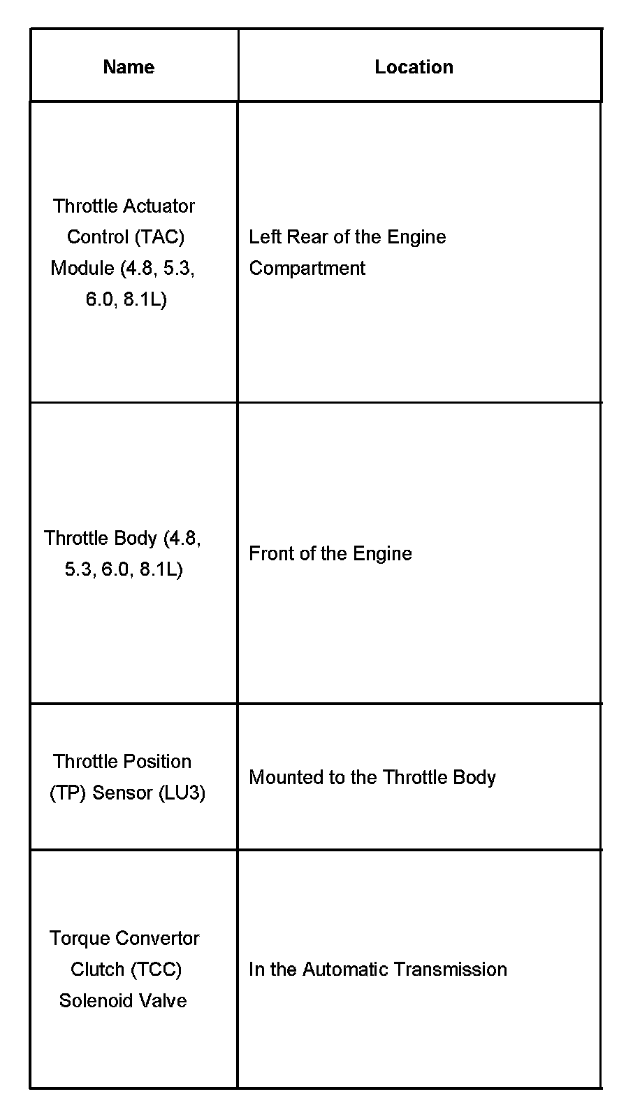 Throttle Actuator Control Module - Torque Convertor Clutch Solenoid Valve: