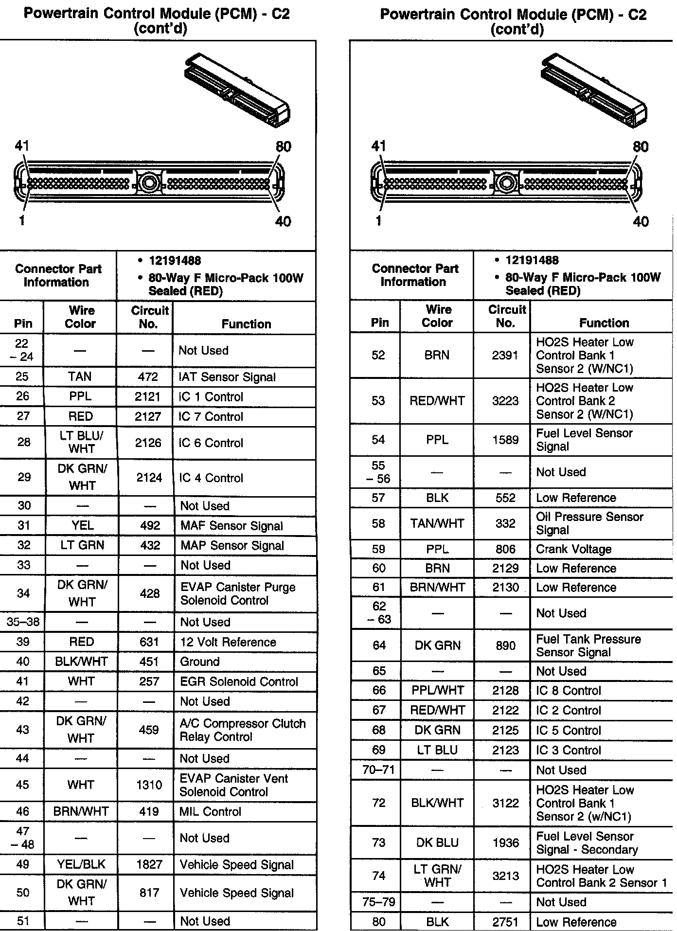 Powertrain Control Module (PCM) C2 Pins 22 - 80: