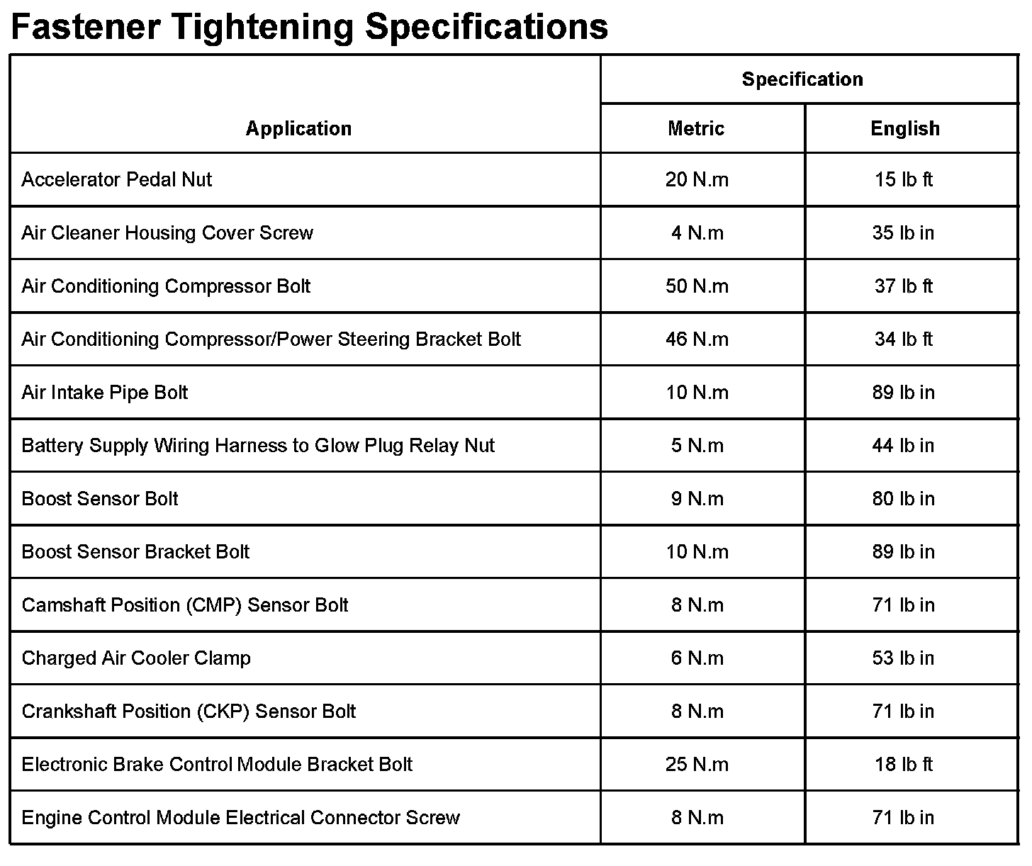 Fastener Tightening Specifications Part 1: