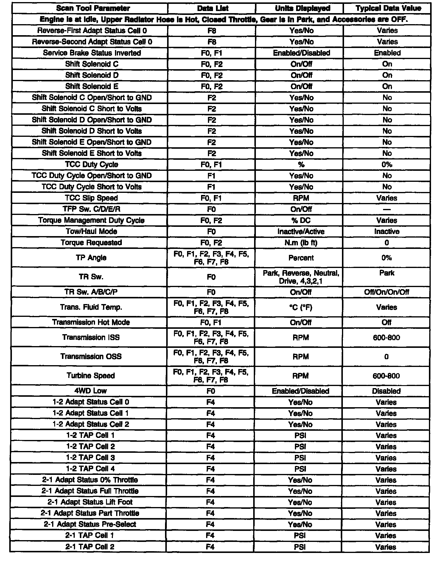 Transmission Scan Tool Data List Part 1 Of 4: