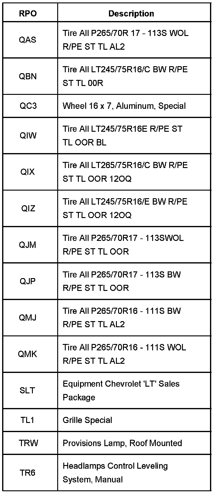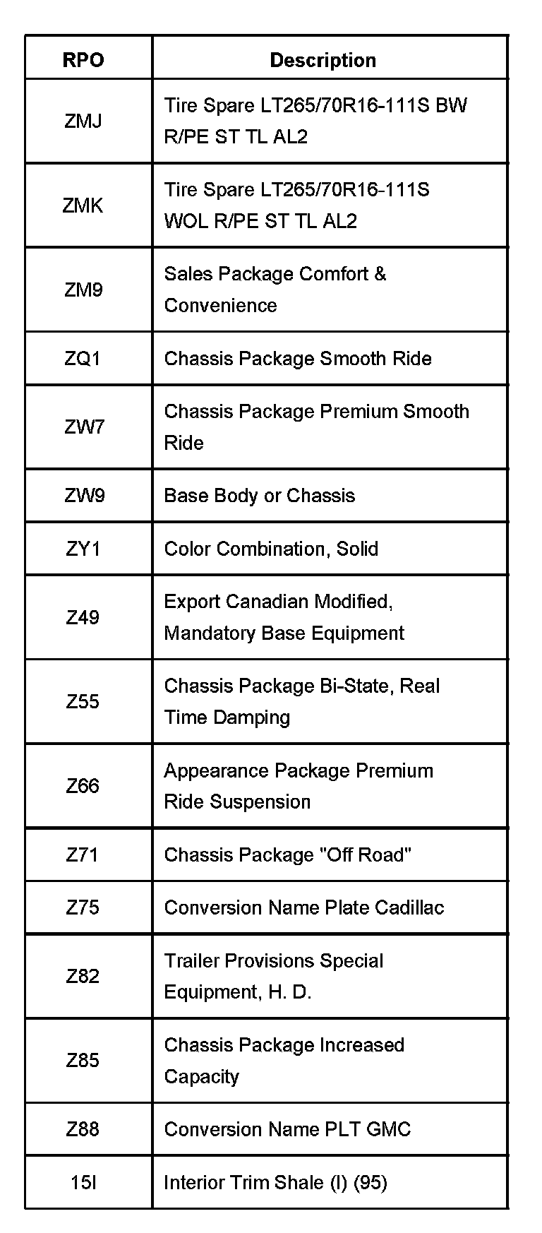 RPO Code List Part 13: