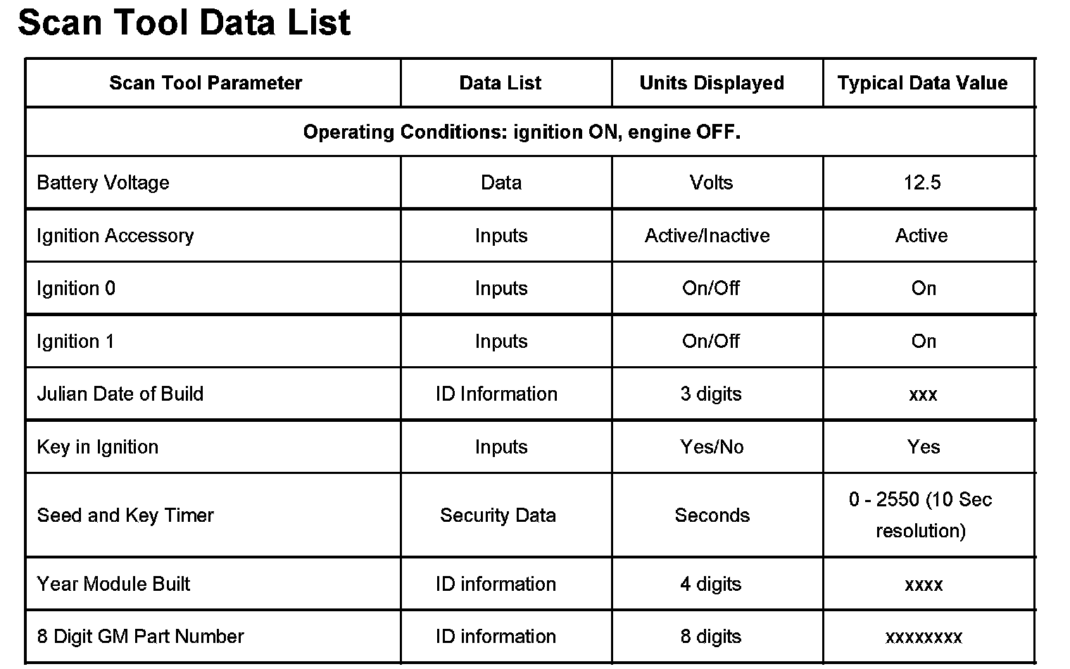 Scan Tool Data List: