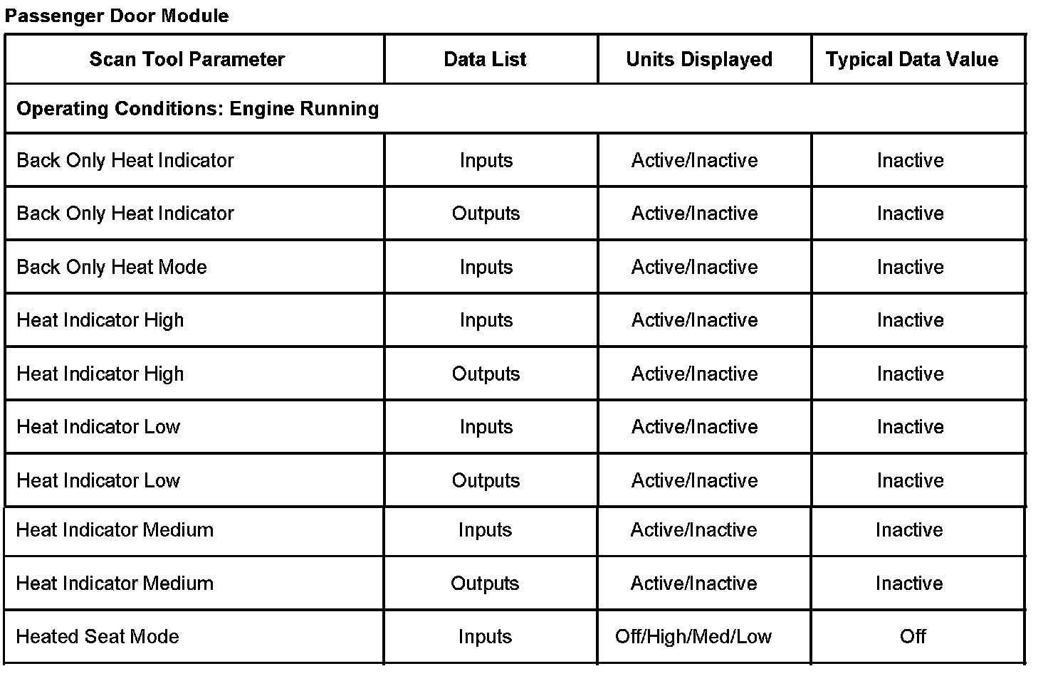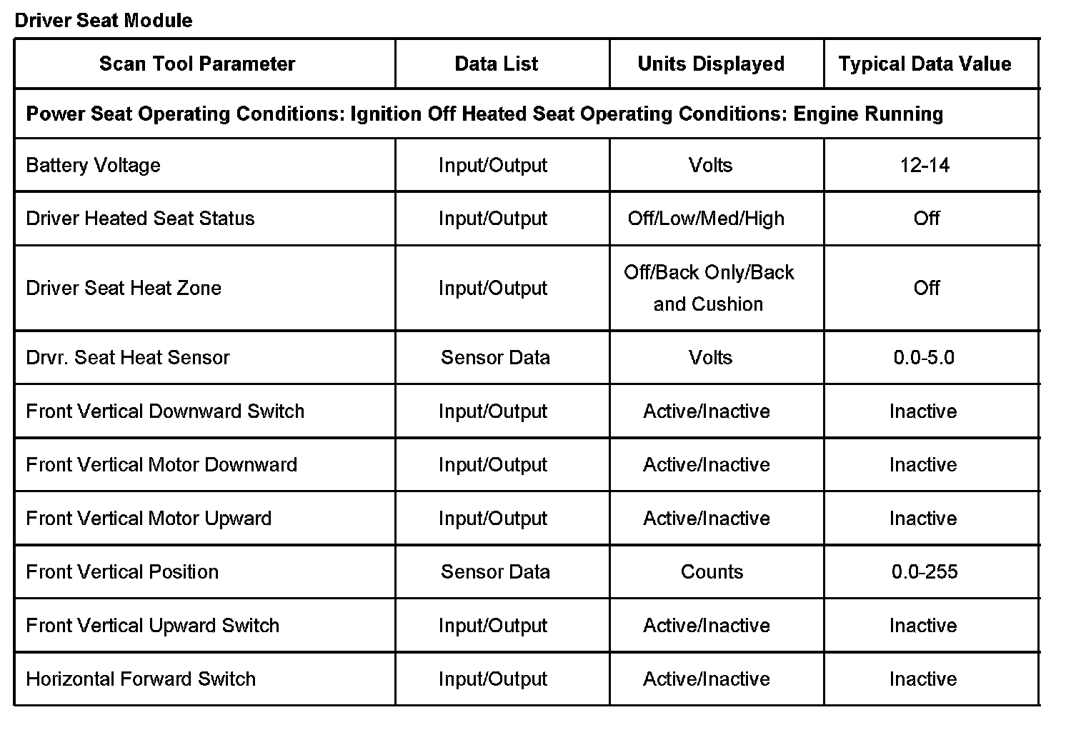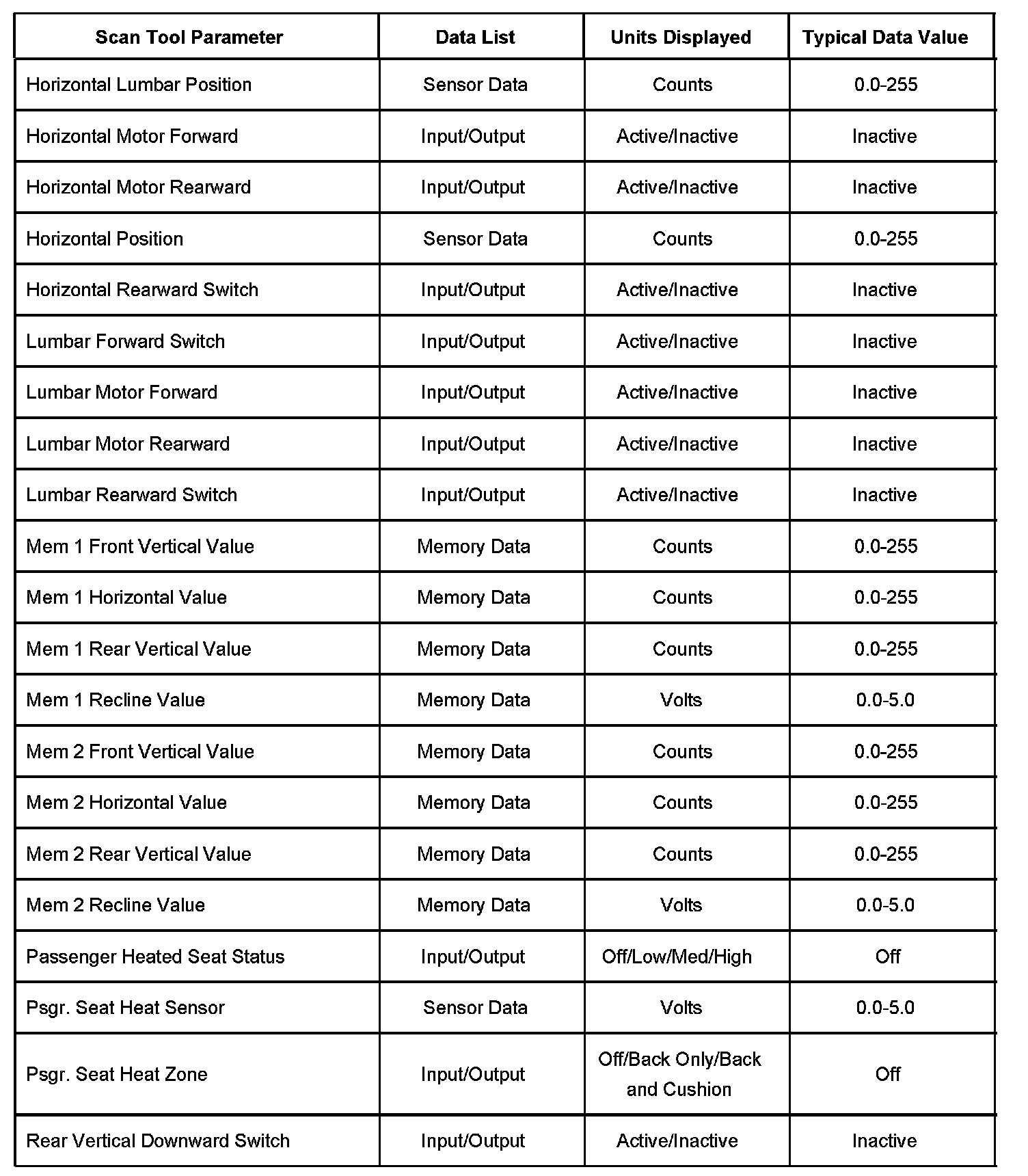 Scan Tool Data List