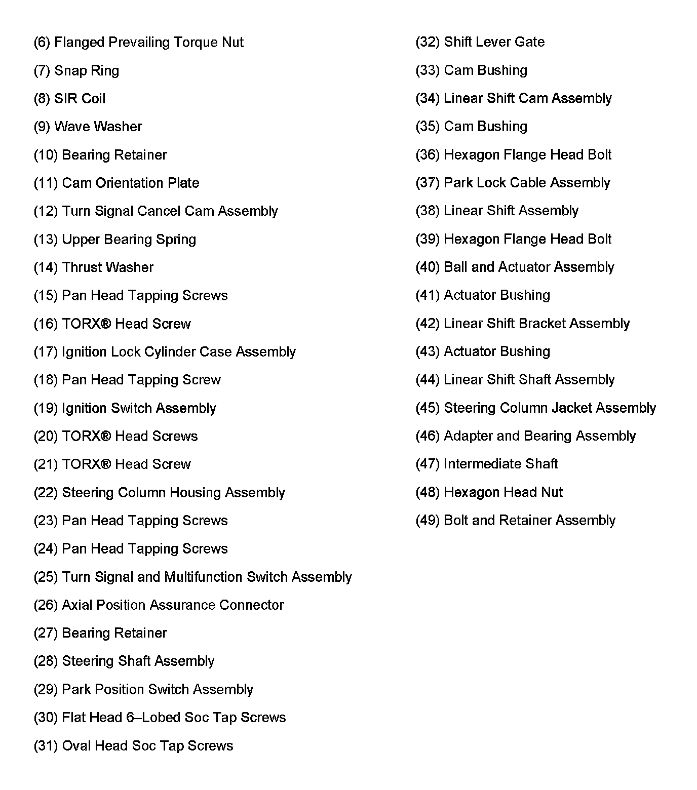 Steering Column - Standard - Column Shift
