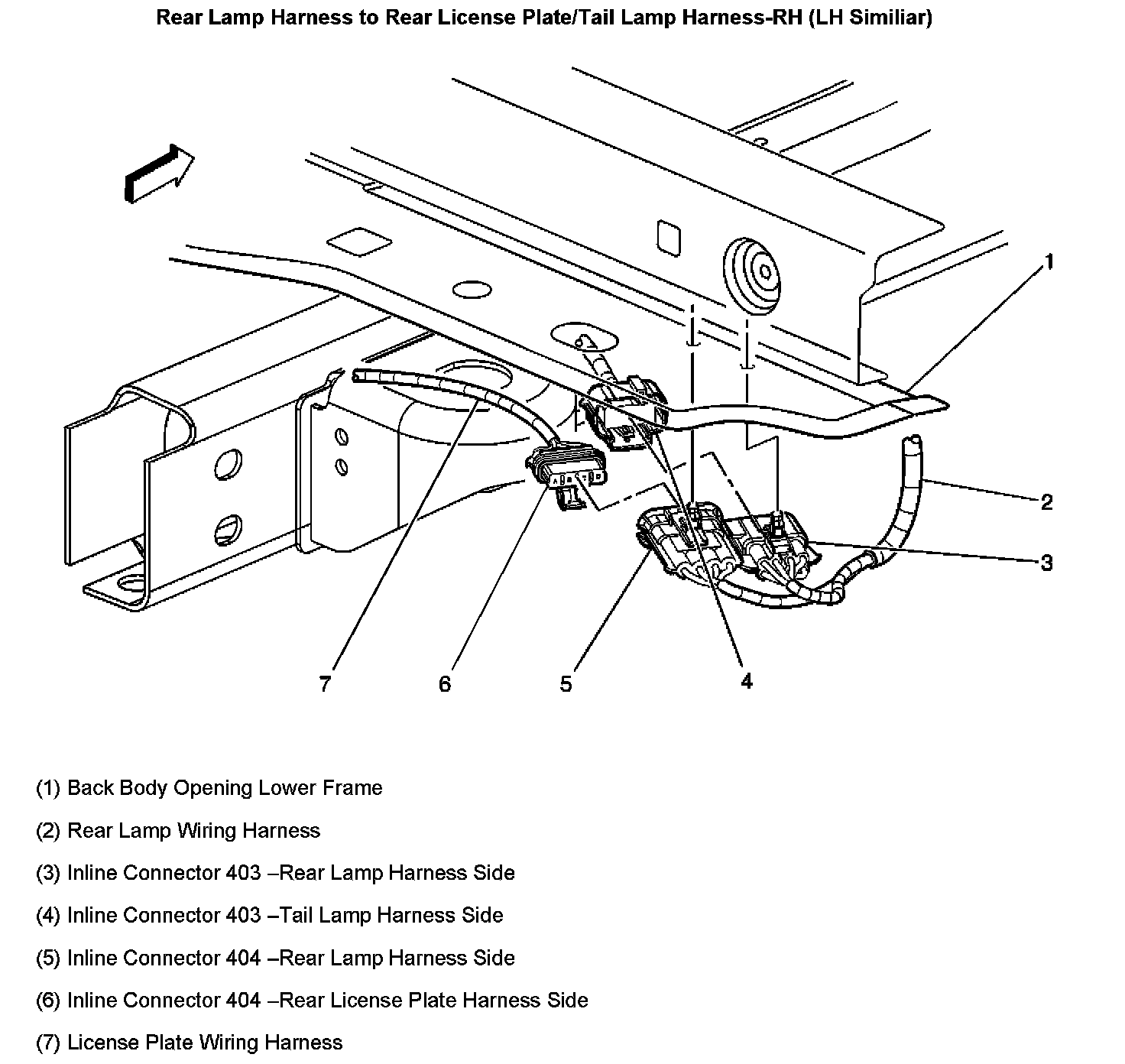 Rear Lamp Harness To Rear License Plate/Tail Lamp Harness-RH (LH Similiar):