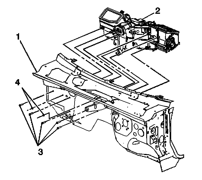 4. Install the bolts(4) to the HVAC module (2).