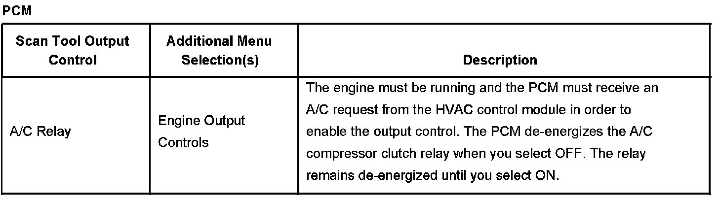 Scan Tool Output Controls - Powertrain Control Module (PCM)