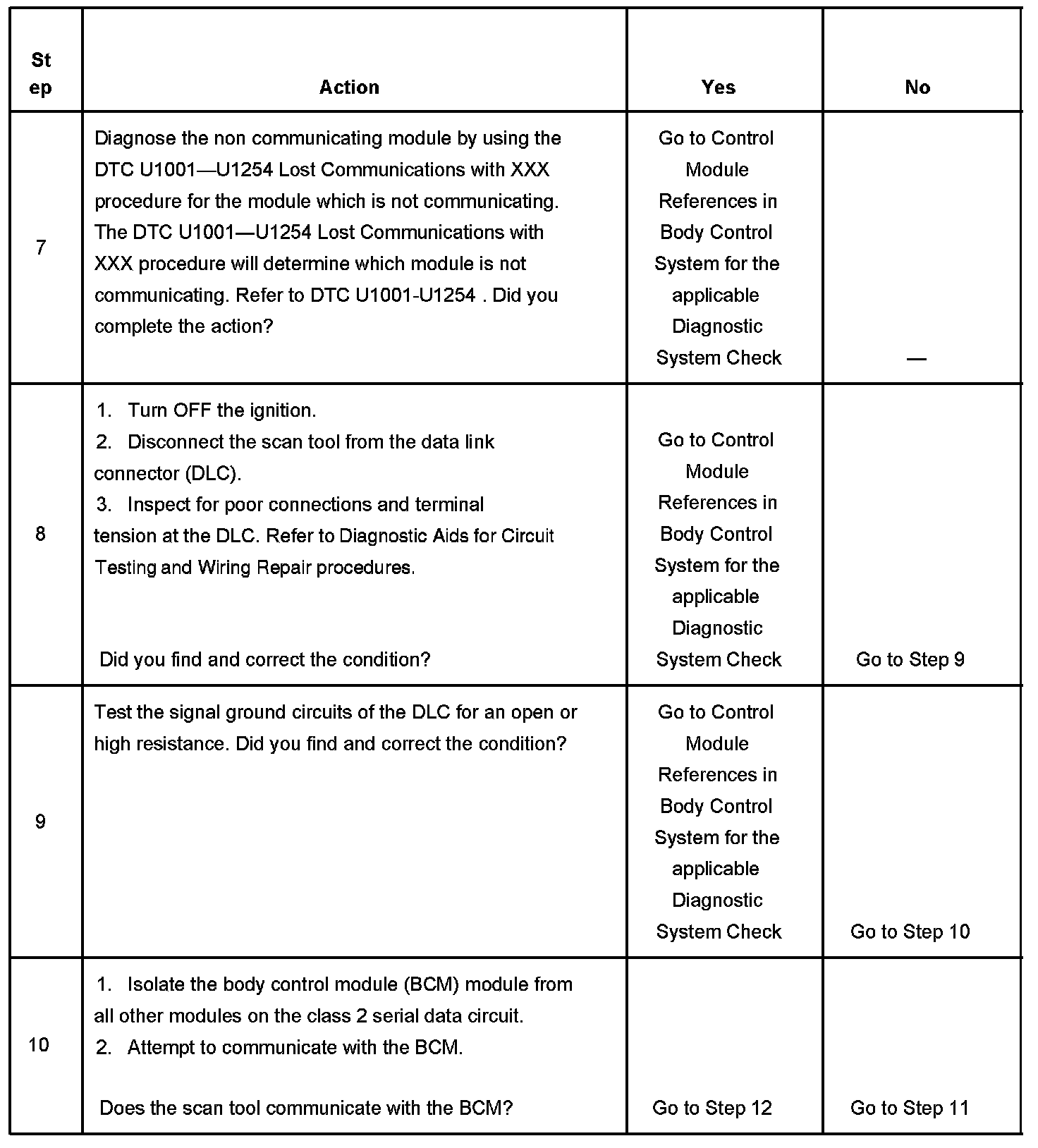 10. Normal class 2 serial data communication cannot take place until the body control module (BCM) module sends the appropriate power mode message. If the BCM does not send a wake-up message, other modules on the class 2 serial data circuit may not communicate.