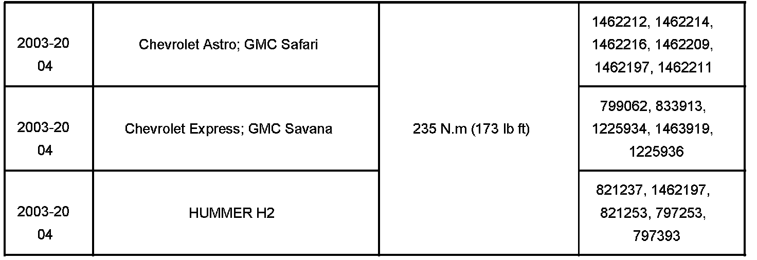 The torque specification for the wheel drive shaft nut has been revised as shown in the table.