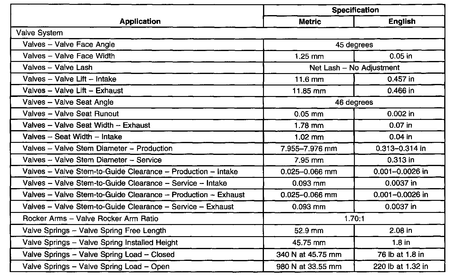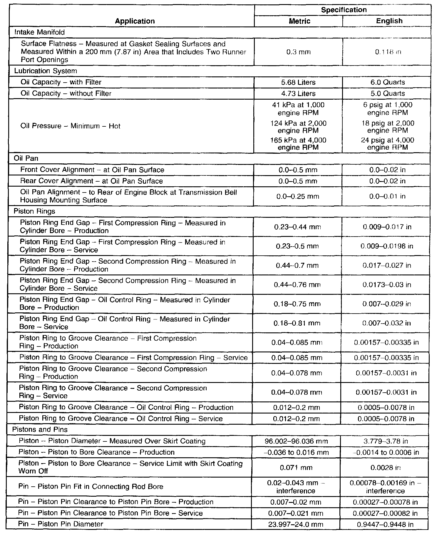 Engine Mechanical Specifications