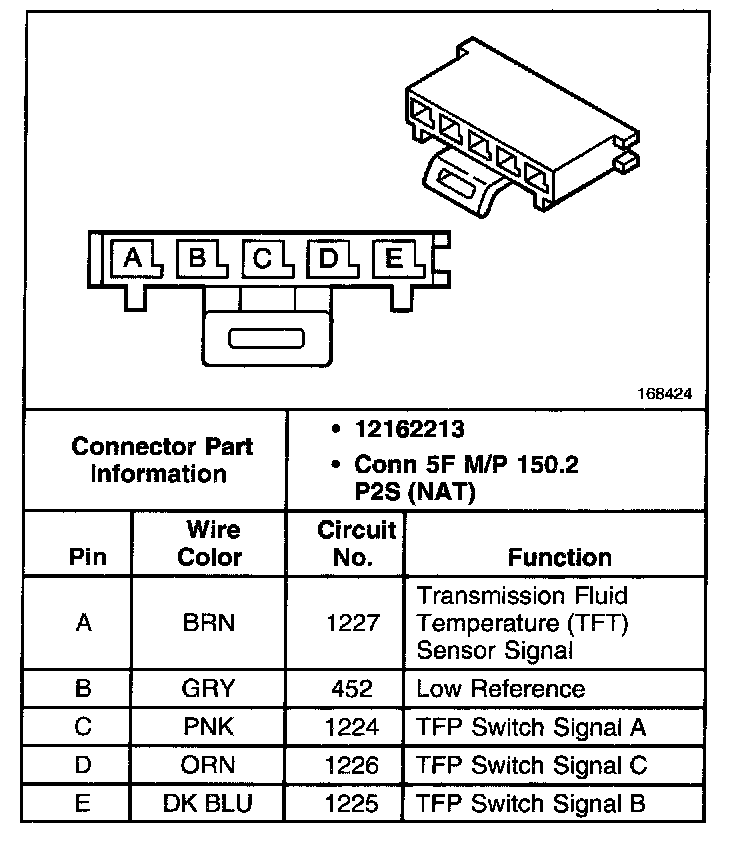 Automatic Transmission Fluid Pressure (TFP) Manual Valve Position Switch Connector, Wiring Harness Side: