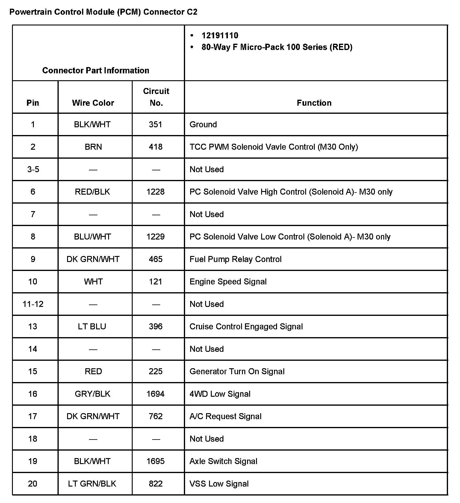 Powertrain Control Module (PCM) Connector C2 Part 1: