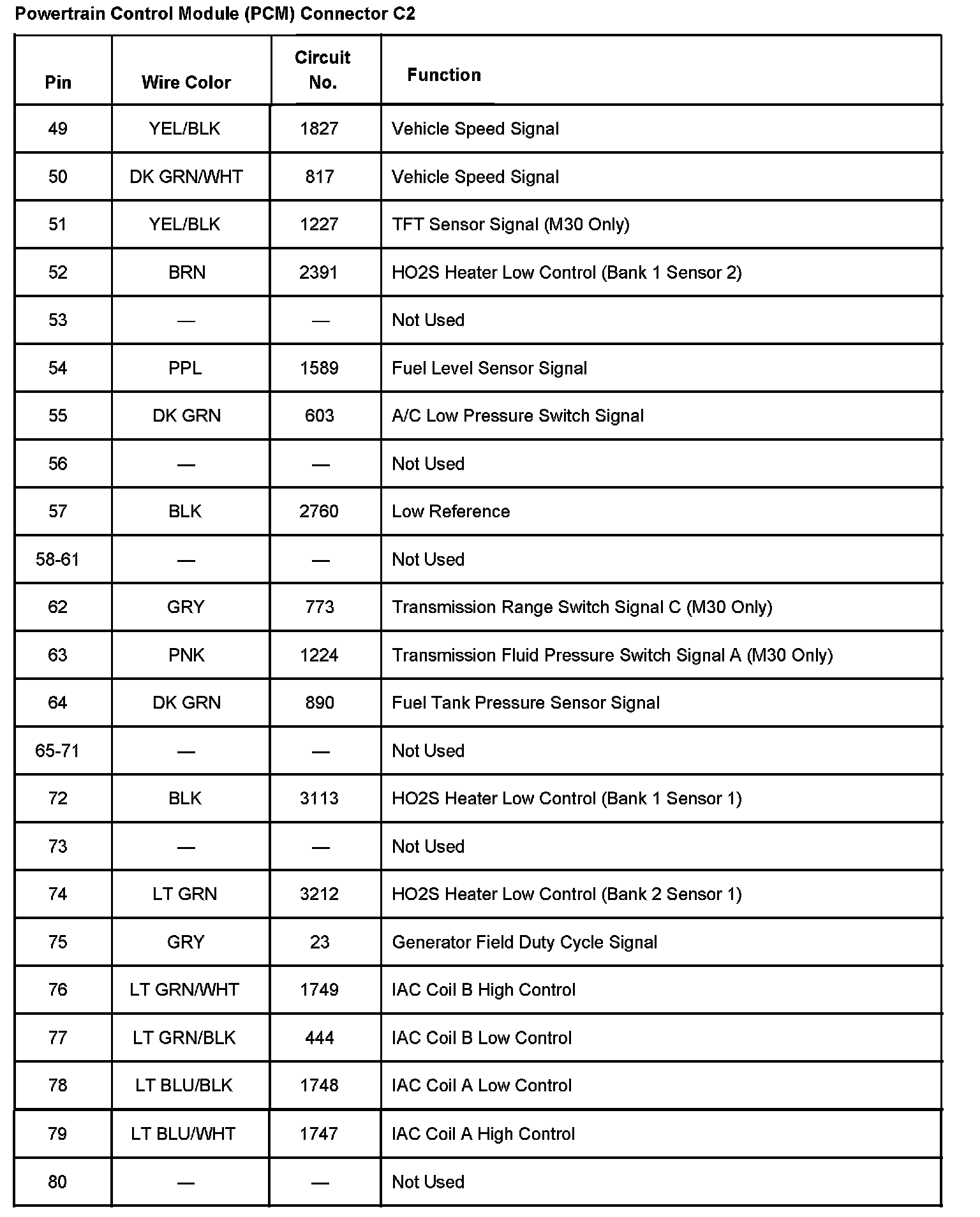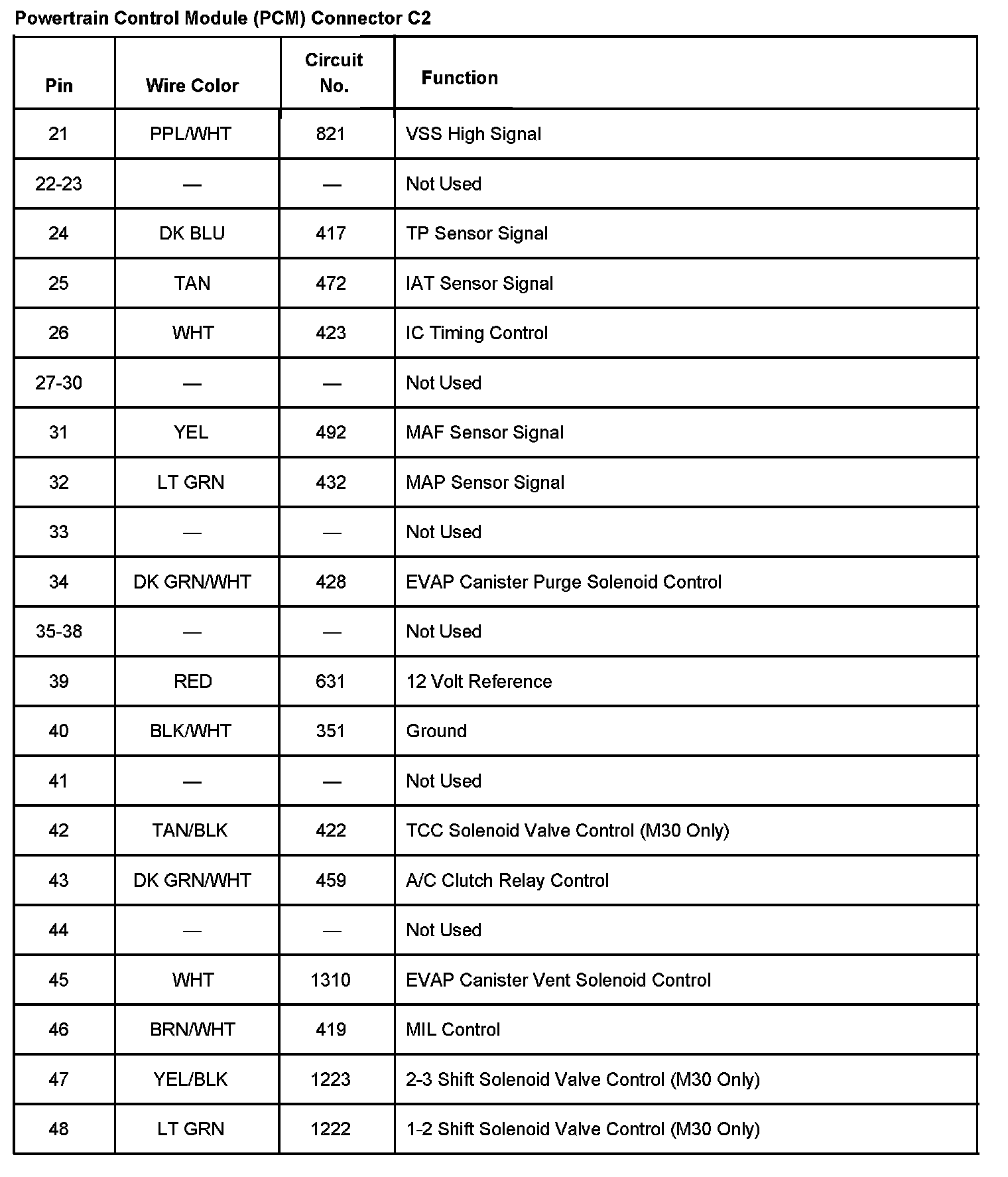 Powertrain Control Module (PCM) Connector C2 Part 2: