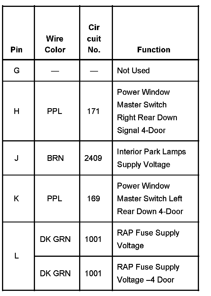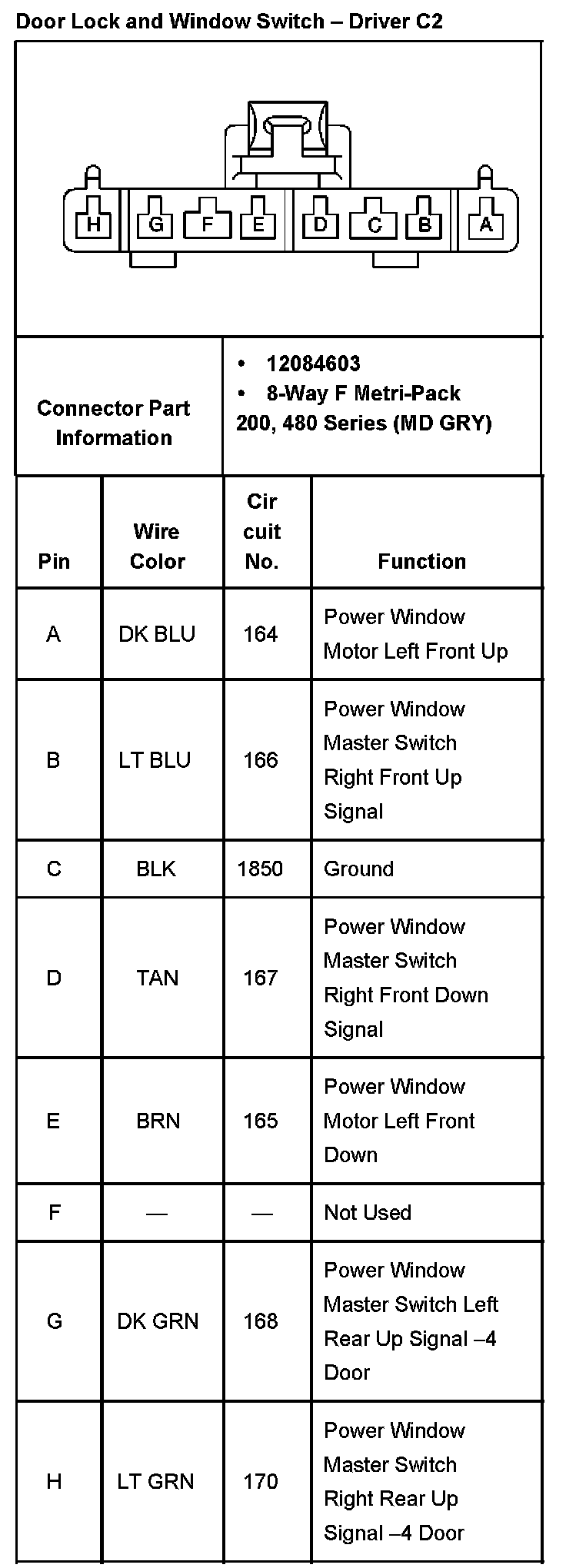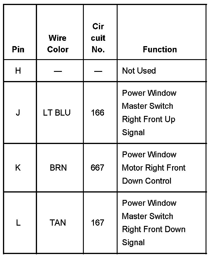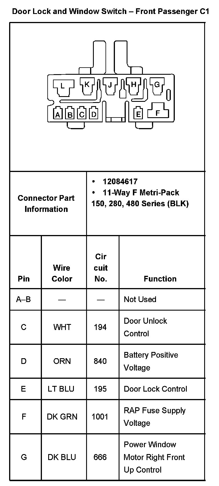 Door Lock And Window Switch - Front Passenger C1 Part 2: