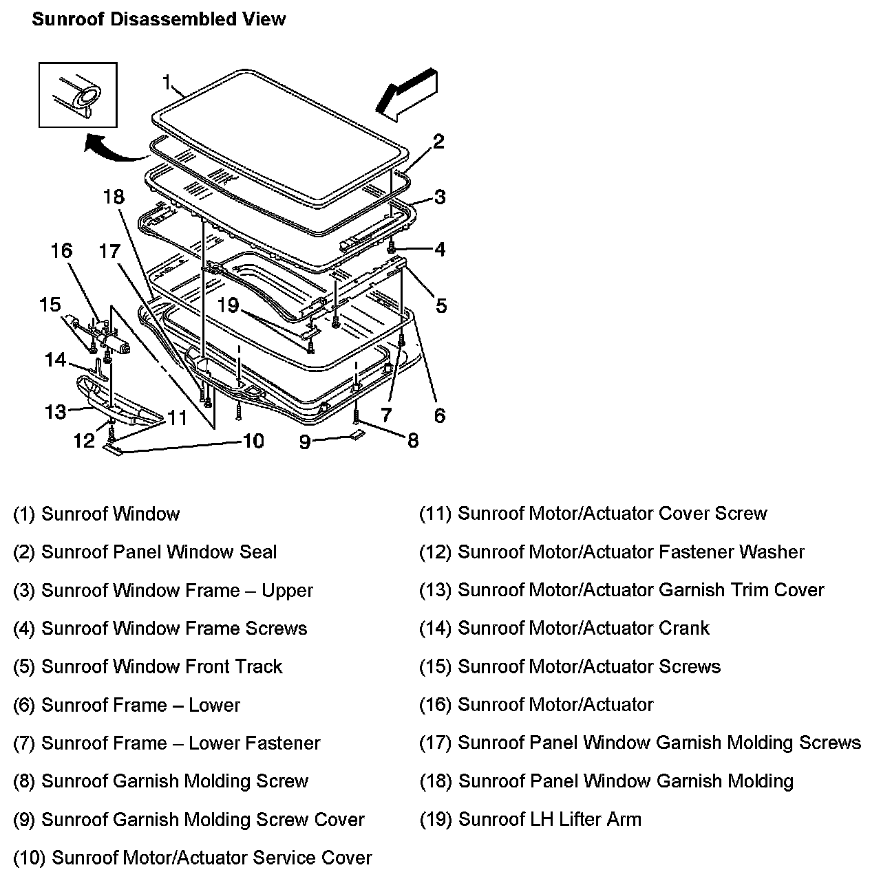 Sunroof Disassembled View: