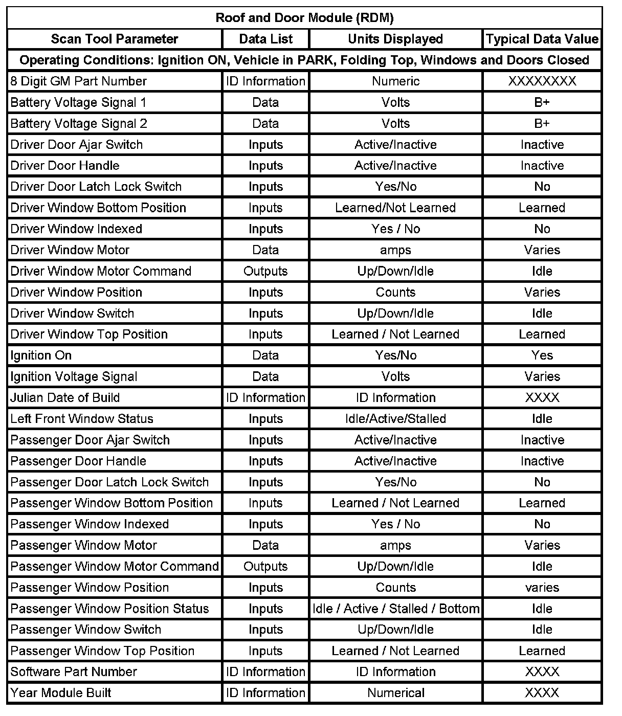 Scan Tool Data List