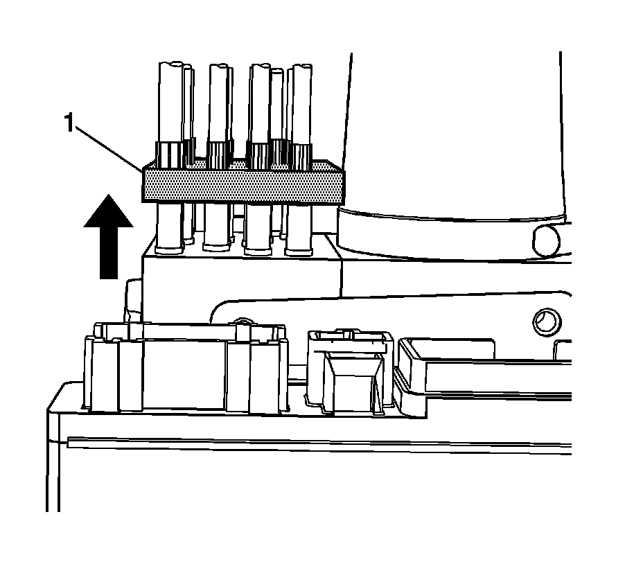 4. Push down on the manifold plate (1) and verify that all of the cylinder hoses are seated properly.