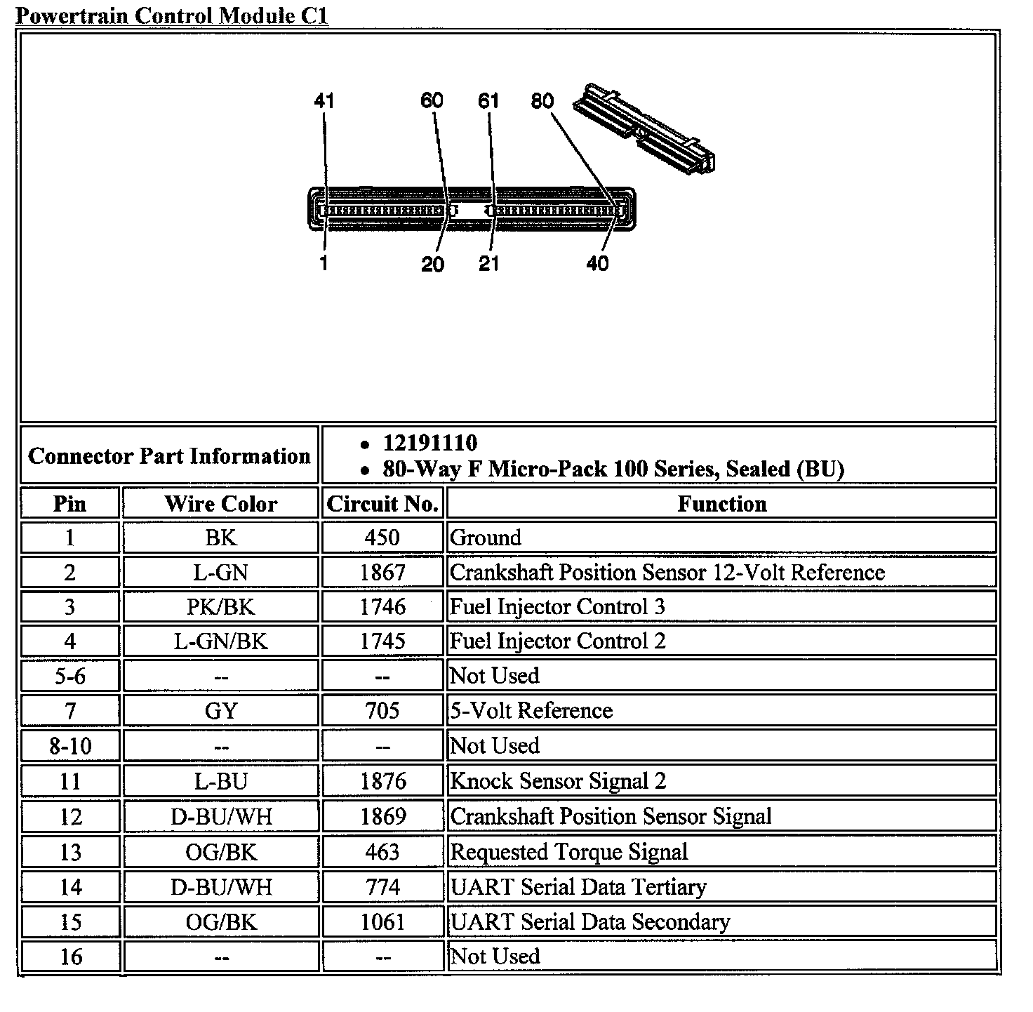 PCM Connector C1 (Part 2 Of 3):