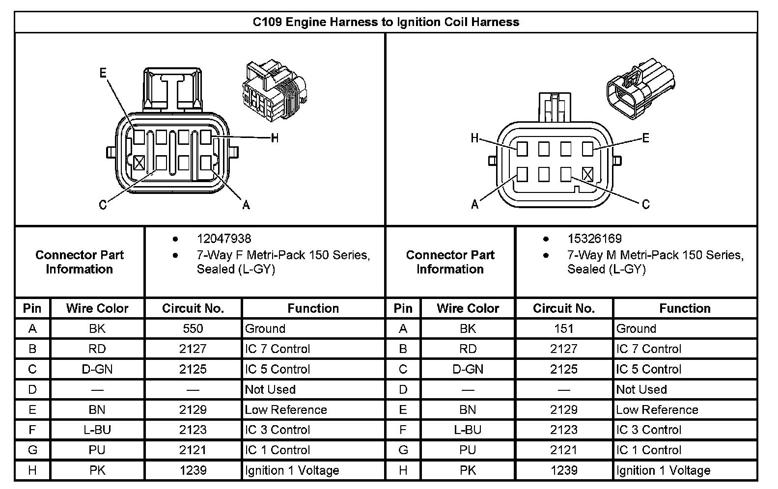 C109 Engine Harness To Ignition Coil Harness:
