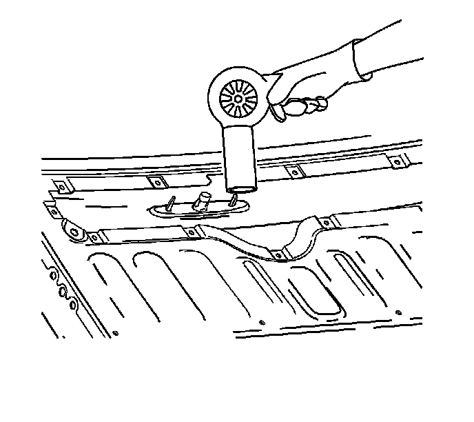 7. Heat the stop lamp mounting area using the J 25070. Hold the J 25070 approximately 152 mm (6 in) from the surface. Apply heat using a circular motion for about 30 seconds.