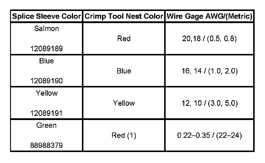 5. Select the proper duraseal splice sleeve (2) and the required crimp nest tool, refer to the Crimp and Seal Splice Table.
