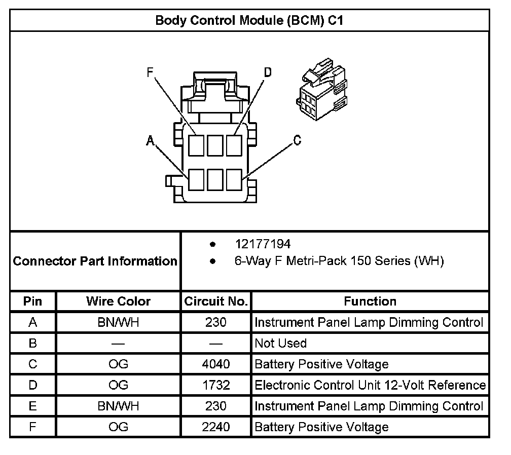 Body Control Module (BCM) C1: