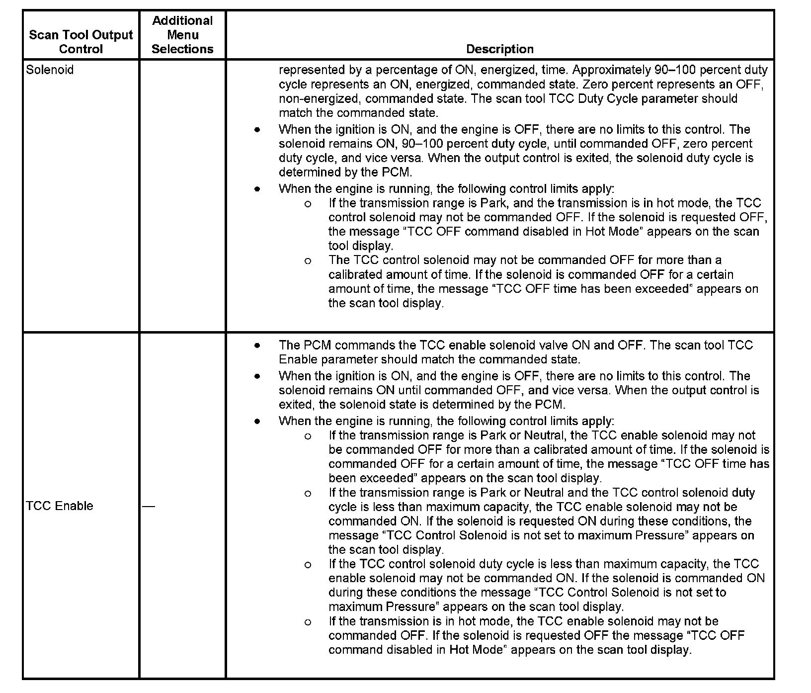 Scan Tool Output Controls