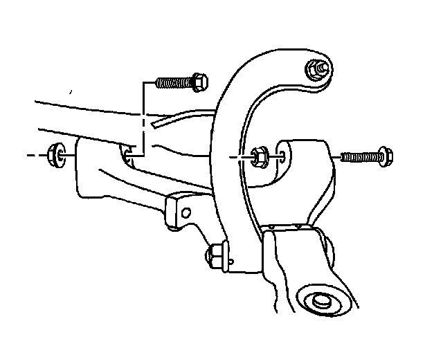 Important: Ensure that the lower control arm is parallel to the lower control arm bracket during the installation and tightening of the lower control arm mounting bolts and nuts. This will ensure correct alignment of the lower control arm bushings.