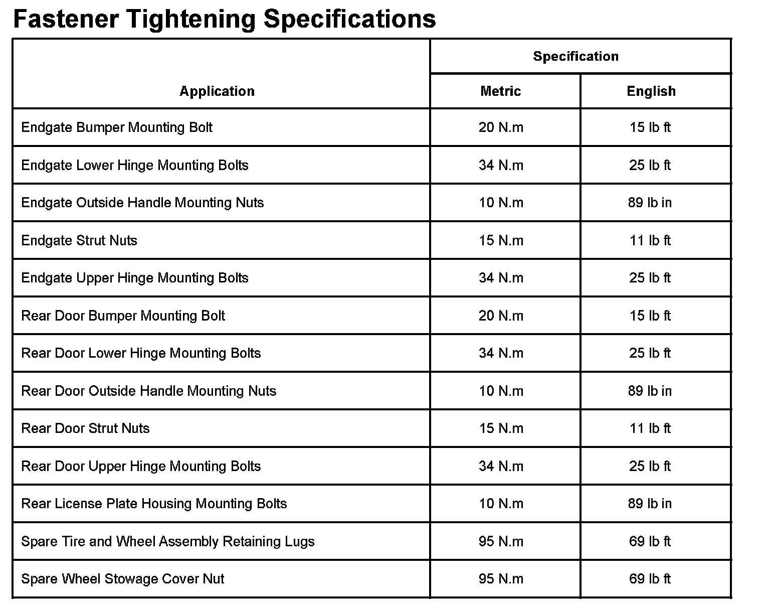 Trunk / Liftgate: Specifications