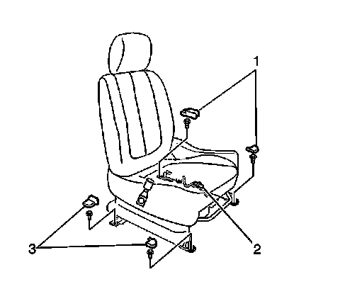 1. Remove the 4 front seat adjuster finish covers (1, 3) by sliding from the seat adjusters.