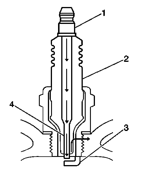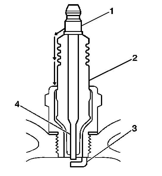 - Measure the gap between the center electrode (4) and the side electrode (3) terminals. Refer to Spark Plug Inspection. An excessively wide electrode gap can prevent correct spark plug operation.