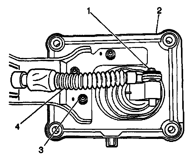 10. Remove the shift select cable (4) from the vehicle.
