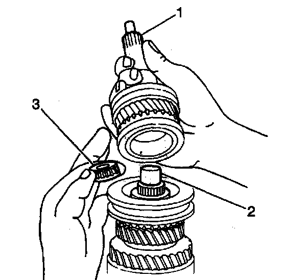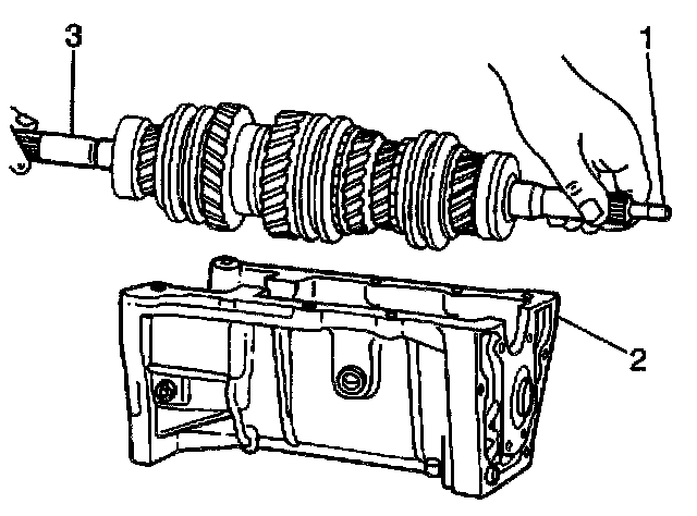 1. Install the input shaft (3) with the input shaft needle bearing (2) onto the main shaft (1).