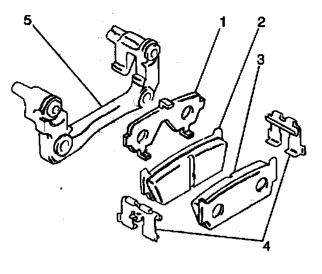 3. Install the 2 brake pads to the caliper bracket (5).