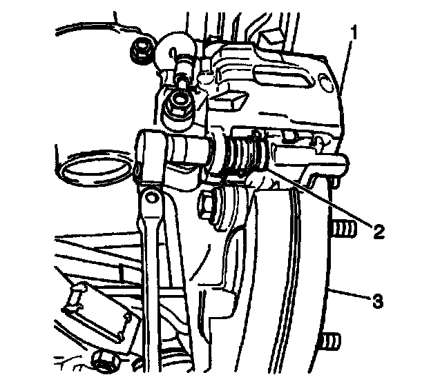 Notice: Do not allow the brake components to hang from the flexible brake hoses. Damage to the brake hoses could result.