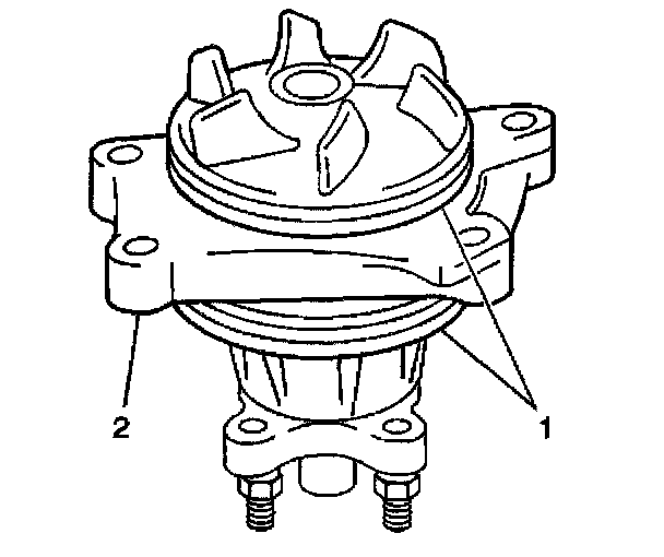 1. Install new O-rings (1) to the water pump (2).