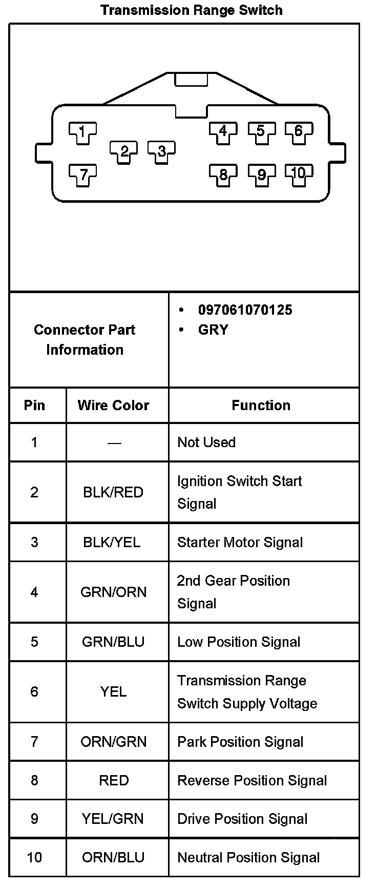 Transmission Position Sensor/Switch: Diagrams