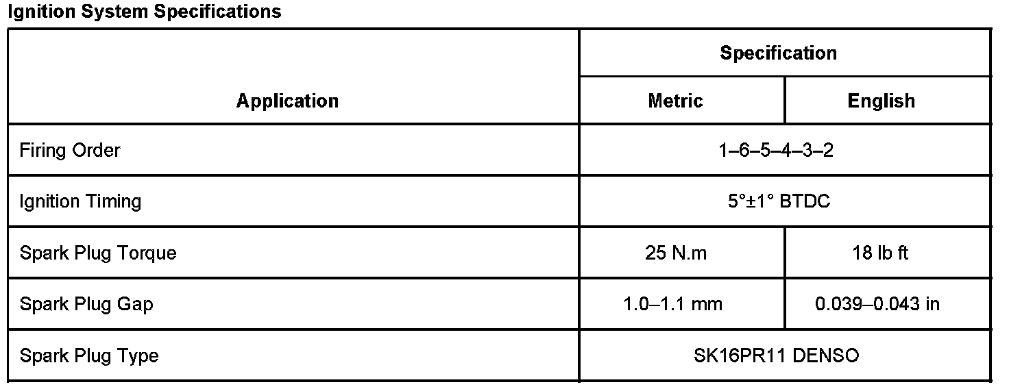 Ignition System Specifications: