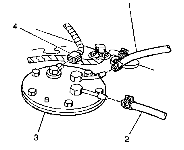 2. Disconnect the fuel supply line (2) from the fuel sender assembly.