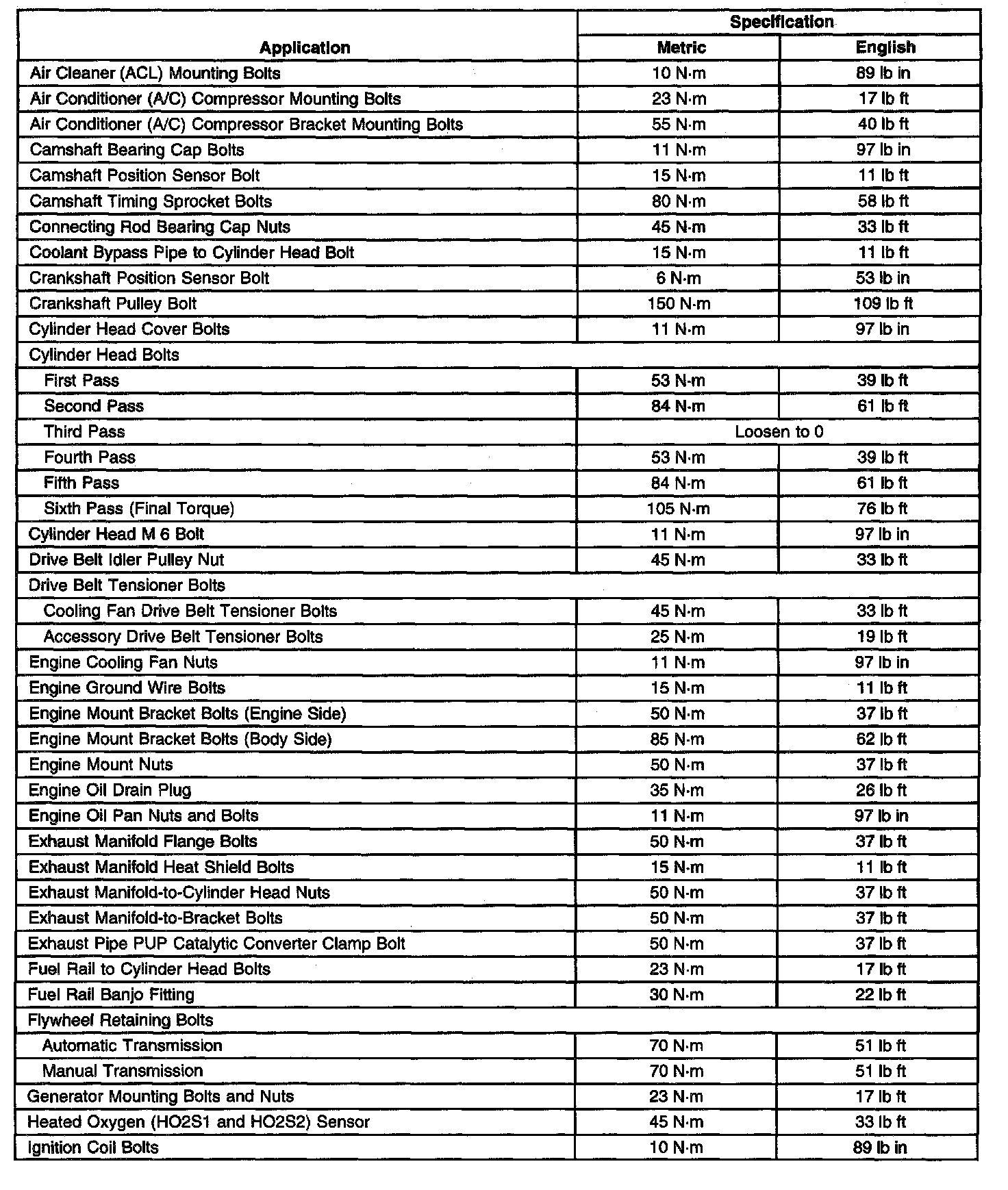 Engine Mechanical - 2.0LFastener Tightening Specifications