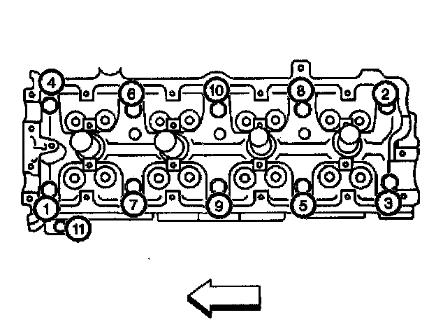 3. Loosen the cylinder head bolts in the sequence shown to 0 torque.