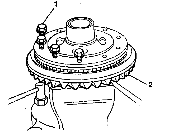 Important: After correct end play has been obtained, remove the ring gear bolts (1) and apply GM P/N 12345493, or equivalent, to the threaded portion of each ring gear bolt and install into the differential case.