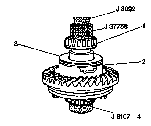 ^ Use the J 37758 with the J 8092 in order to place the left differential side bearing on the left differential case with the tapered side up and slowly press the left differential side bearing onto the left differential case.