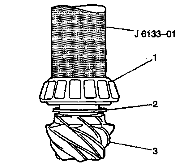 11. Install the pinion bearing (1) onto the pinion gear shaft. Use the J 6133-01.