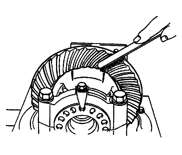2. Insert a standard drift punch between the ring gear and the differential carrier to bind the ring gear and create a drag.